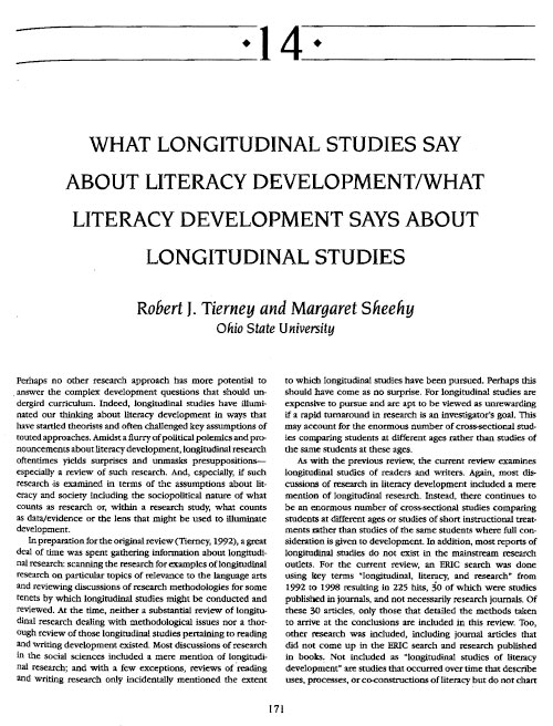 What longitudinal studies say about literacy development/what literacy development says about longitudinal studies